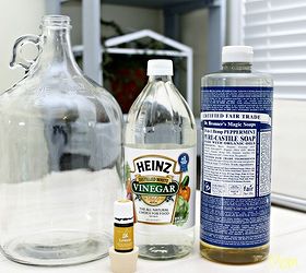 You will need a gallon container (like an old milk jug), white vinegar, castile soap and lemon or citrus essential oils.
