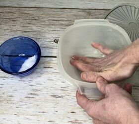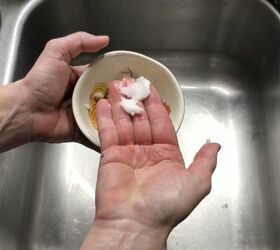 Place 1 teaspoon coconut oil and 1 teaspoon sugar (or salt) in a bowl. Mash together with a fork until all the sugar is mixed into the coconut oil. Rub all over your hands and rinse off. The sugar exfoliates your skin while the coconut oil moisturizes it.