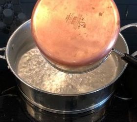 Boil Method - In a pot 1 cup vinegar, 1 Tablespoon salt, and add water to fill the pot so that the copper is covered.