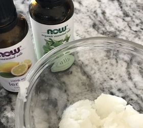 This sounds crazy but Coconut Oil removes hard water stains?! I learned this years ago from a lady that did home cleaning. You could also use Lemon Oil, but for some reason I couldn't find it in my area. I read the ingredients and basically it is mineral oil and lemon essence. So I melted about a half of a cup of coconut oil, 10 drops of lemon oil and 5 drops of peppermint oil. I don't think the essential oils are completely necessary, but that is what she told me so that is what I did!