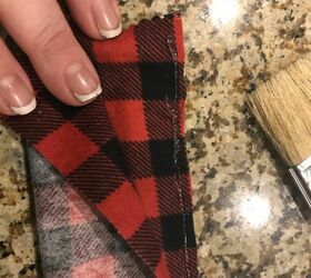 First step- just fold the flannel fabric oaround the handle of the paintbrush. Then slip it off and glue it down the side and adhere the sides together. It should be a tube.