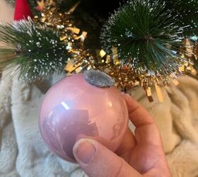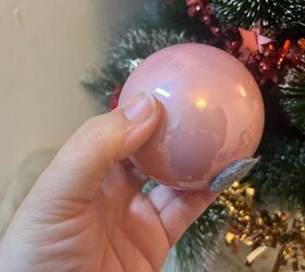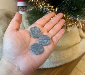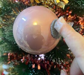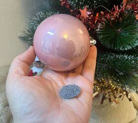 Stick the prepared felt pads onto the ornaments. Be strategic! Place them on the side that faces the tree so they’re hidden from view.