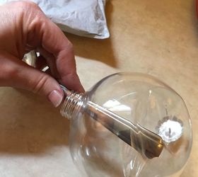 I had to get my skinny fingers in there and unroll the note and there was a couple times where the note crumpled. I tried to use the long handled spoon and it just creased the paper and I didn’t want that. I made a few extra notes just in case. After replacing the lid, I tied the silver hanging string on. The string came with the bulb.