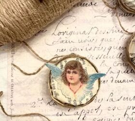 After removing the leftover wax, cut book pages into circles and snip around the edges for flexibility. Glue the paper circles inside the containers, wrapping thread around for hanging. Personalize with angel faces, buttons, or star anise for decoration.