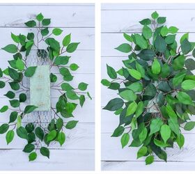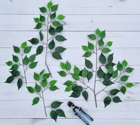 With your chicken wire/foam base all ready, it is time to prep your greenery! I usually like to use a big leafy green for the base layer and ficus is perfect for that. Since we have a large area to start with, the prep is pretty easy. Simply cut the ficus into 3 smaller pieces.