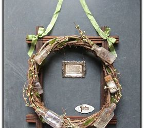 Wrap thin gauge wire around the neck of the bottles and tie to the wreath. Get tutorial here