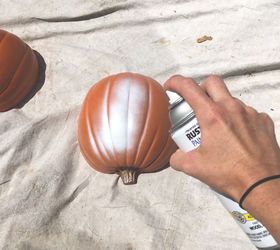 As I mentioned before, you'll want to spray paint your pumpkins AFTER they are adhered to each other. It just makes life easier and less messy.