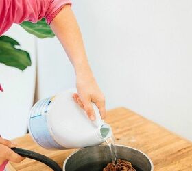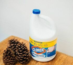 Next fill a pot or bucket with equal parts water and bleach. Don’t worry those pinecones will want to float but we will take care of that.