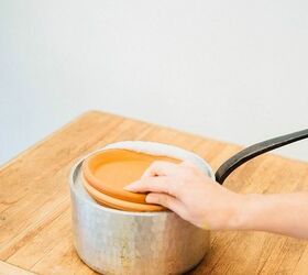 To make sure your pinecones are fully submerged take a brick, rocks, or in my case some terra cotta saucers- really anything heavy that you don’t mind getting bleach on- to ensure those pinecones are fully submerged.