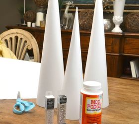 I decided to try my hand at making the cones myself. I found this great tutorial online for making the cones out of poster board and I made 3 cones of varying height in no time!