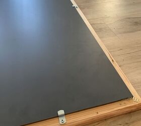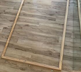 I used I used picture frame moulding to create a frame. Using wood glue and staples to secure the mitered corners (cut on my miter saw). I used corner clamps to hold everything in place while the glue dried.