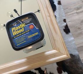 To attach the mirror I used Liquid Nails along the back of the frame (**make sure to use a Liquid Nails meant for mirrors), and then secured the mirror to the frame using metal mirror clips. I preferred the metal because of their lower profile. I didn't want to see the clips from the side of the mirror and I wasn't planning to extend the frame to cover that area. I also used two packs of them, so 8 clips total to give as much support as I could to the mirror since my frame was on the thin side. Note, my mirror was 1/4" thick, make sure you use clips made for the correct thickness of your mirror. I also used very small wood screws so they didn't go through the front of the moulding/frame.