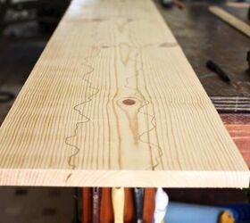 Next take 1x12 and cut it to the full length of the mirror, which is 66". With a pencil draw two parallel live edge designs on the 1x12 so that you’ll get upper and lower boards. Make sure that the pencil lines do not overlap each other. Follow the pencil lines with a jig saw.