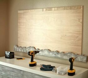 Cut 2" wide by 58" long strip of 1/4" plywood. This 1/4" plywood could be in shorter sections (if 58" long piece is not available) or a full 58" long piece. Sandwich the 2" strip of plywood between the 1/2" backboard plywood and live edge board. Make sure all three pieces are centered. The live edge board will be 4" longer on both sides of the backboard. Screw in 1 1/4" Pocket hole screws from the back to hold the three pieces together. You will have 1/4" gap between the live edge board and back plywood for the mirror to slide in.