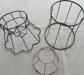 Although I'm sure it's possible to buy vintage style wire lampshade frames new, this is an upcycling project, so our lampshade frames are all reclaimed. Check thrift stores, yard sales and auctions for lampshades that have seen better days. You should be able to pick them up for just a couple of dollars.