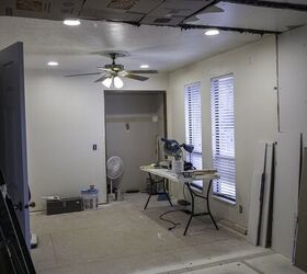 Once the demolition was finished, an electrician installed new can lights in the sitting area, closet area and centered a light fixture over the bed.