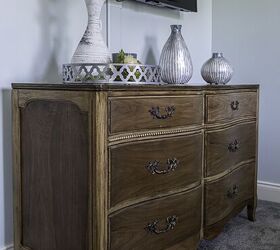 A beautiful vintage french dresser and nightstand were refinished for the room.