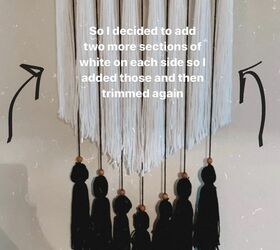 Next, we're going to hang the tassels. Now, I had made these black tassels outside of this project that I had scrapped, so I don't have the pictures to show how I made them. They are very basic to make though, and I know there are Youtube videos to show exactly how to put them together.