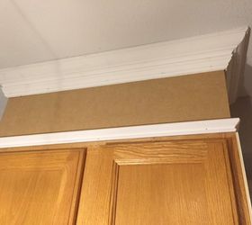 To build up the cabinets, I attached boards to the top of the cabinets and the ceiling for MDF to attach to which would enclose the area.