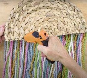 7. Trim the yarn at the bottom of the boho rainbow wall decor