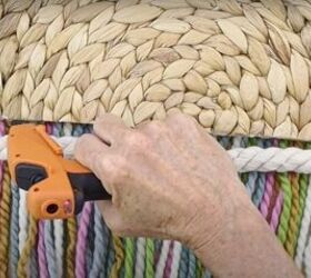 With the rope tied off, I glued it in place along the raw edge of the placemat. I applied the glue in small sections to ensure that it didn't dry too quickly and gave me sufficient time to properly place the rope.