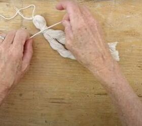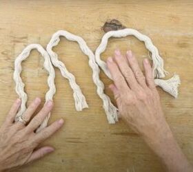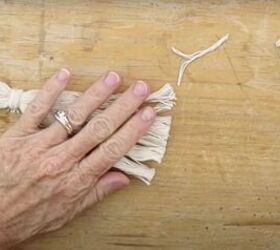 I decided to enhance the appearance of the wall hanging with more tassels. I cut a 10-inch piece of the cotton rope and divided it into three sections