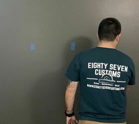 Using a stud finder, we marked where all the studs in the wall were using blue painter's tape.