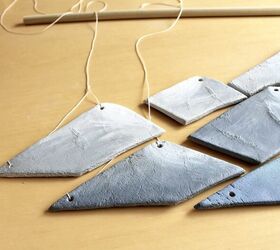 Keep repeating this with all your pieces making sure that you leave lots of length on your string for later and making sure that all your pieces hang straight when they dangle. This can be tricky to do but it’s really important for the overall affect when you’re finished.