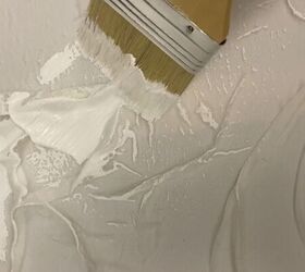Leave the canvas to dry overnight. The next day, come back and cover the textured piece with your chosen color of paint. I’ve gone for white. Be generous and remember that this is fabric, so it will absorb more paint than you think.
