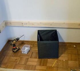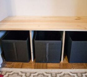 To add support to the bench and to give a more cubby like appearance, I cut some 3/4" plywood pieces as support braces, then nailed these to the bench seat.