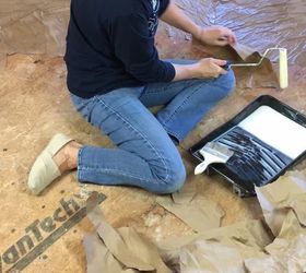 I decided on brown paper flooring. Why? It’s inexpensive and when we want to put down hardwood, it can be laid on top.