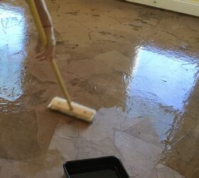 My floor is pretty big so I started using a small roller to apply the glue. It worked well but there were times when I had to use the paint brush to smooth out the paper.
