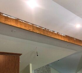 This is looking up at the laminate beam. I attached as many pieces as I needed to get my width. It was only two inches added to once side and about 4 on the other due to the wall placement which you’ll see in the final picture!