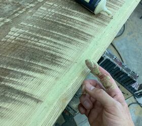 I wood filled the seams to help it look more like a solid piece and sanded once that was dry.