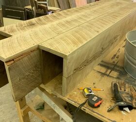 A client wanted a 24’ laminate beam covered in barn oak so we made these huge faux beams!! Check out my tutorial for a step-by-step guide to help you create your own!