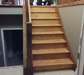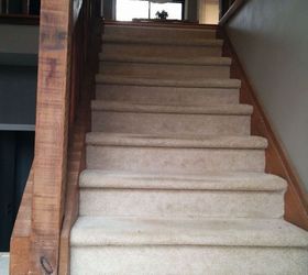 I have a classic 80's home setup. Many homes in my area have it; the split foyer staircase. Having ripped out old carpeting all throughout the upper part of the house, only the staircase was still covered in the antique ivory carpeting anymore. The rough cedar stringers, banisters, and spindles were looking worn and splintering all over, so I decided to give this area a makeover.