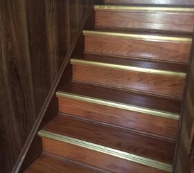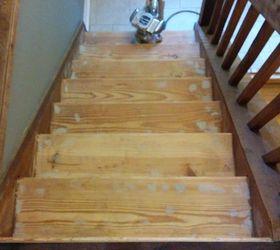 I have the same stairs - right now if have these awful metal strips with laminate over them, I though about taking it all off and just have the pine treads but I worried about the noise factor- does is sound like your walking on a bear floor - echo? thank you for your input - april (picture attached)