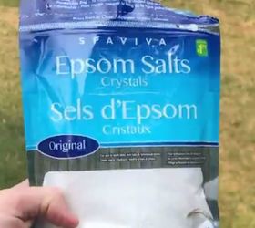 Step 2) Sprinkle epsom salts all over the burnt grass area. Watch how much I use in the video below.