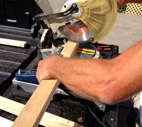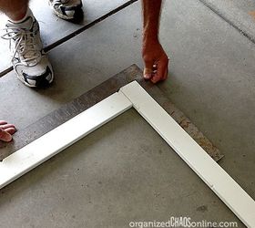 Our lattice panels measured about 32 x 48, so Paul cut enough 1 x 3's to create frames for each. Instead of mitering the corners, we decided to straight cut the boards and just butt the corners together.