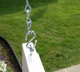 He measured the chain from the drilled screw to the length we needed to attach it to the panel for the height we had decided on. Using two needle-nosed pliers, he opened the last link on the chain and slipped off the excess chain. He then attached an S-hook into the bottom link, and squeezed the link back together with his pliers.