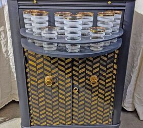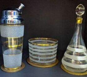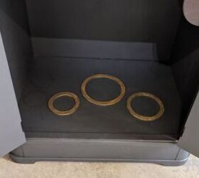 There were also three raised circles inside the cabinet to house the main glassware (talk about attention to detail back in the day!) that I highlighted using the same gold paint and brush.