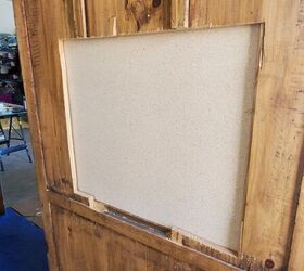 I decided particle board would be the easiest material to use to cover the hole in the back of the armoire. My husband purchased a sheet at Lowes, and cut it down to size.