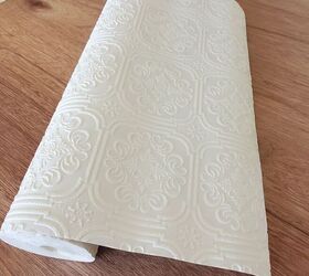 I had this roll of paintable wallpaper leftover from another project. I liked the pattern, and decided it would be great for this project.