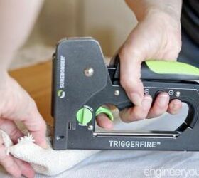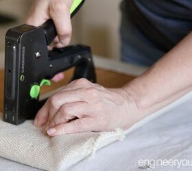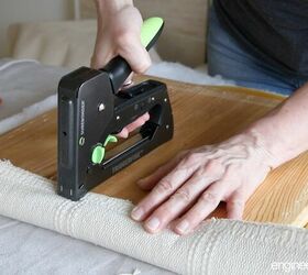 The rug fabric is pretty thick so I used ⅜” staples. I also used the “trigger” function of my staple gun to do the corners where there was more fabric to go through. It allows you to use both hands if you need to bring down the handle and then you can position the stapler exactly where you need it and then gently pull the trigger. So much easier and more precise!