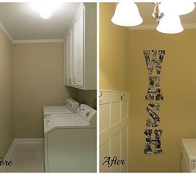 I made this cute wall hanging with family pictures decoupaged to Hobby Lobby letters.