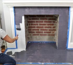 3. Tape the perimeter of your fireplace with low-tack blue painters tape. If you have a non-working firebox and you want to stencil all the way towards the back, don’t forget to add tape back there too! This will prevent getting any unwanted paint in certain areas.