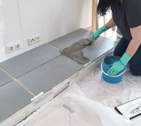 We first built the foundation using 2x4s and built a frame.Then we tiled and grouted it.