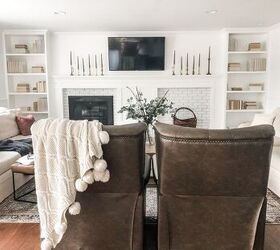 - (Optional: we added a tv bracket and blocking above the fireplace. If you decide to add a tv too, you’ll need to cut additional 2×4’s to support it as we did).