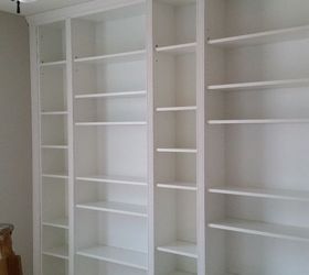I also added some shoe moldings over the gaps that were between the baseboard and the first shelves.