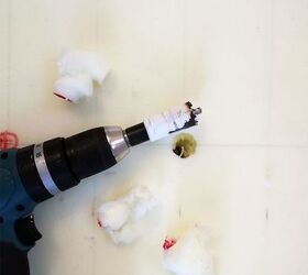 Next, use the hole saw bit to drill holes into the foam carefully.